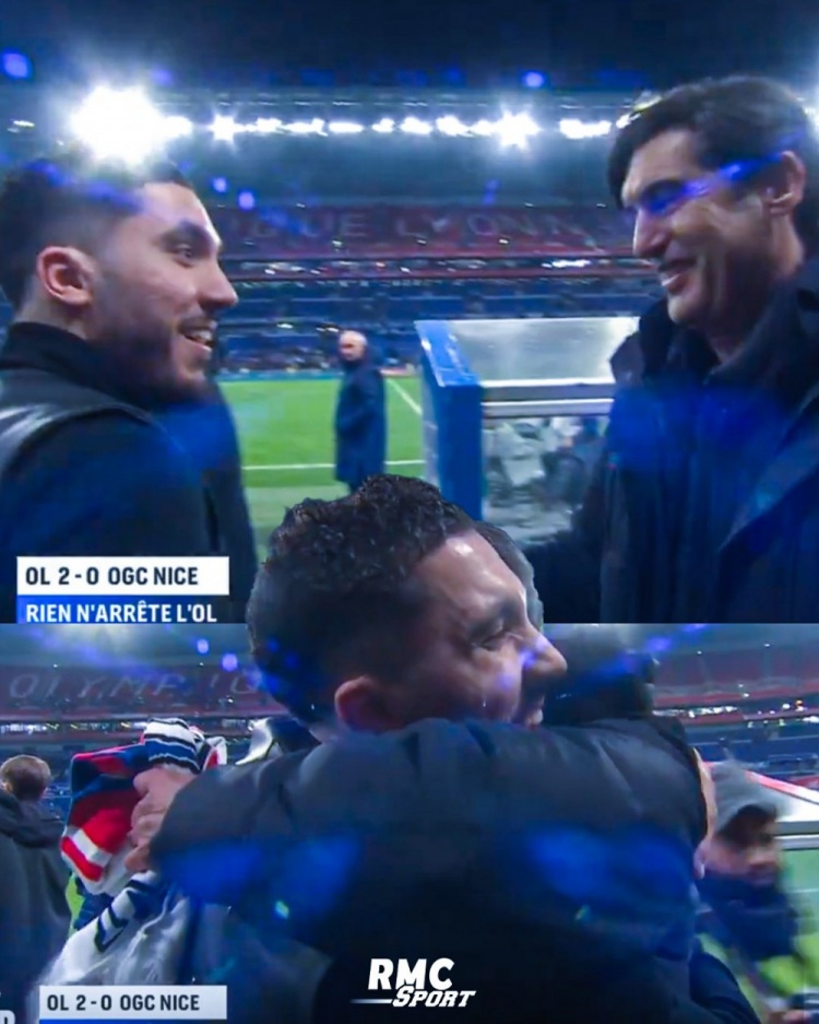 2月16日讯 里昂在本轮法甲2-0击败尼斯,现场观赛的谢尔基在赛后祝贺了老东家主帅丰塞卡。
